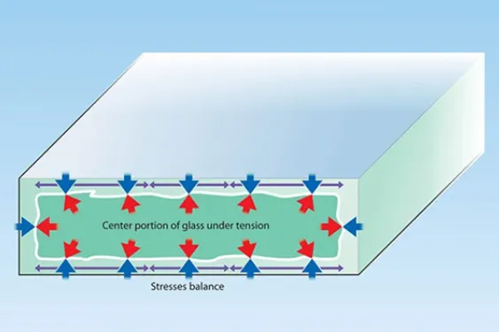 This distribution of residual stresses gives tempered glass its high strength without altering its optical properties.