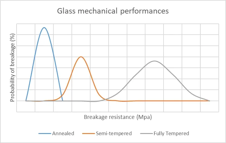 - Approximately twice as strong as annealed glass but weaker than fully tempered glass