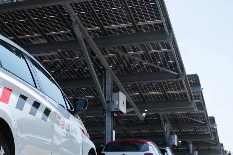 The project, developed and built by Eiffage Energie Systèmes, covers an area of 12,000 m2 and comprises 14 carports structures with a total of 5,641 bifacial photovoltaic modules with ECS. This project won the CRE5 PPE2 self-consumption call for tenders.