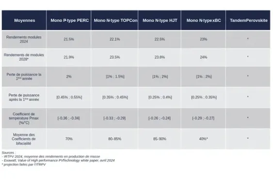 La technologie HJT représente environ 10% des modules monocristallins produits en 2024 (source : ITRPV).